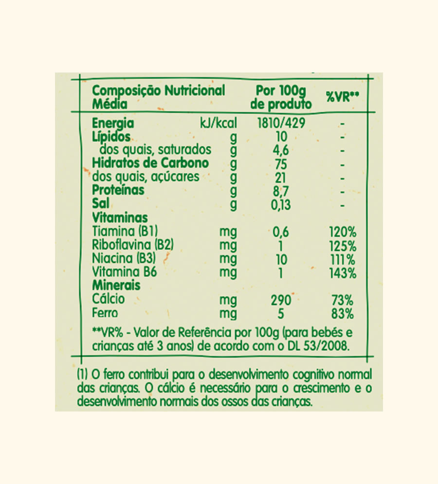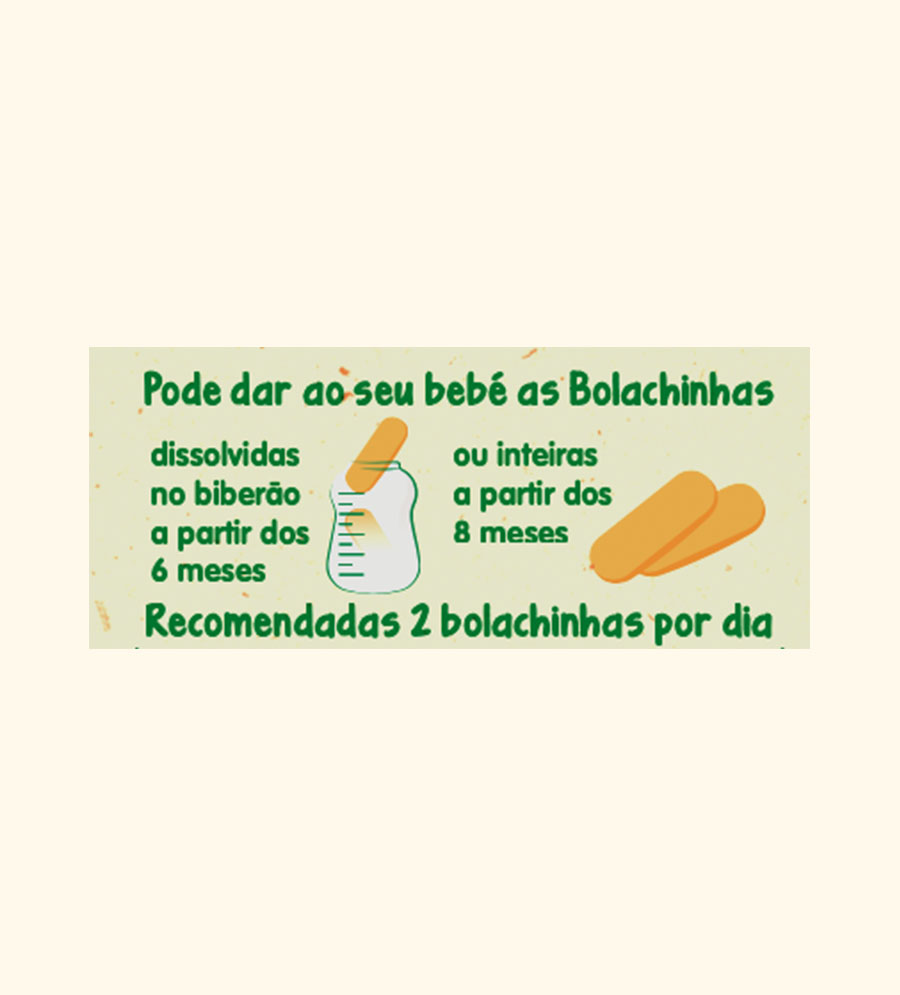 – As bolachinhas são adequadas para mastigação a partir dos 8 meses. – Recomendadas 2 bolachinhas por dia.