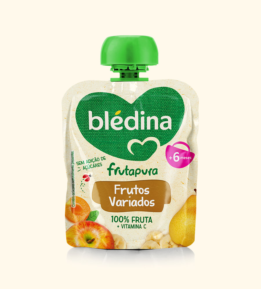 As saquetas de Blédina Frutapura Frutos Variados, são 100% fruta + vitamina C,